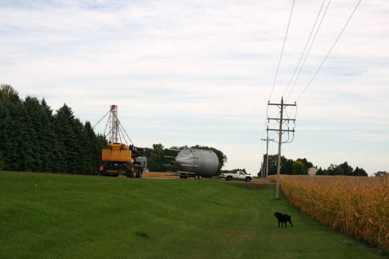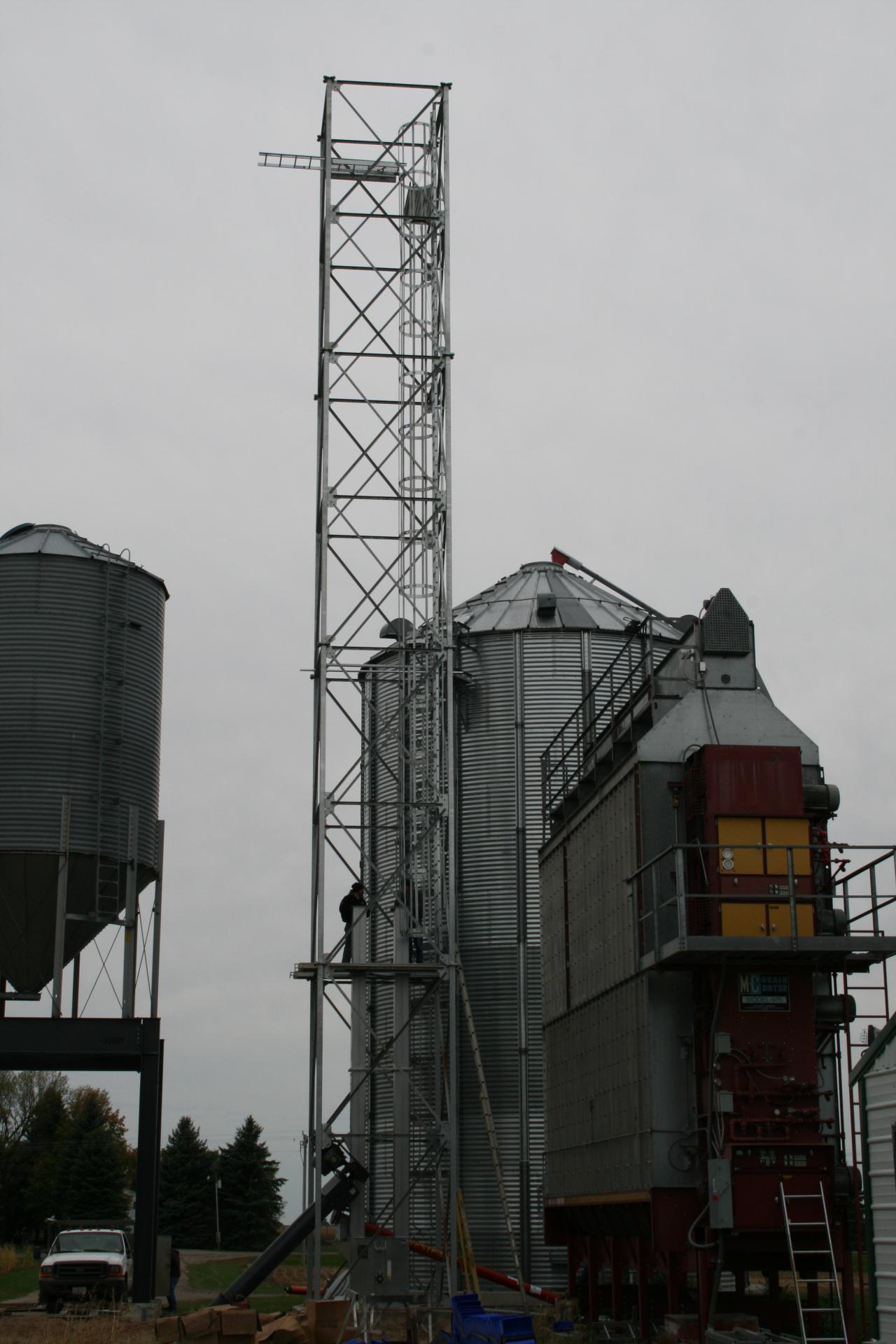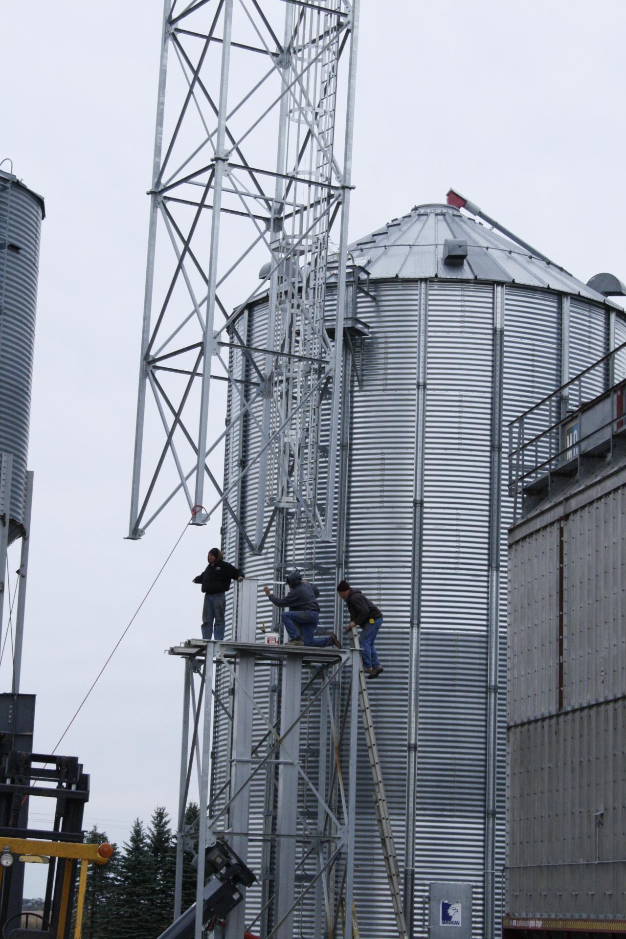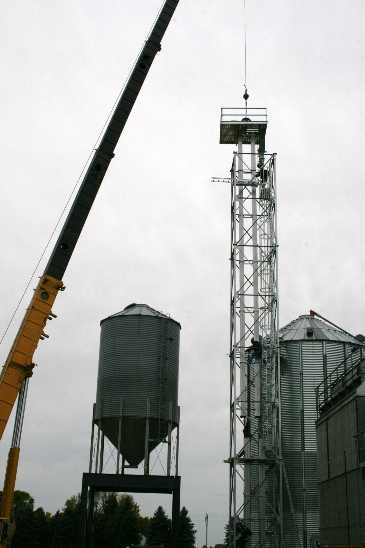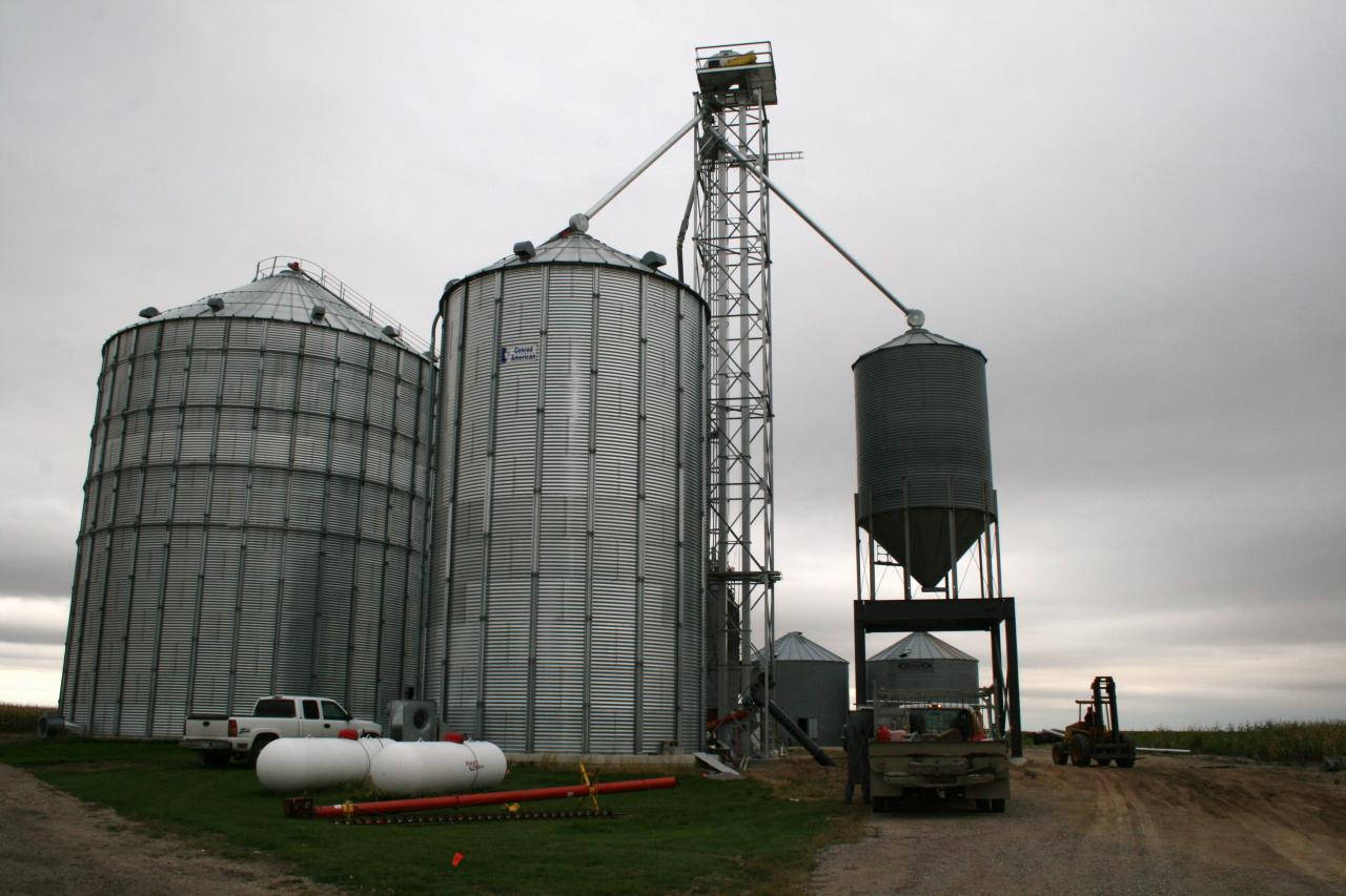 Below is a thumbnail list of photos taken during the addition of a an overhead grain bin moved from the original site and a new grain leg. These additions as well as an unloading pit to the existing site have allowed us to increase harvest productivity. Being able to unload a semi in 6 minutes instead of 15 allows us to keep the combine rolling. Being able to store your own grain also allows for flexibilty in our marketing and improves our bottom line.